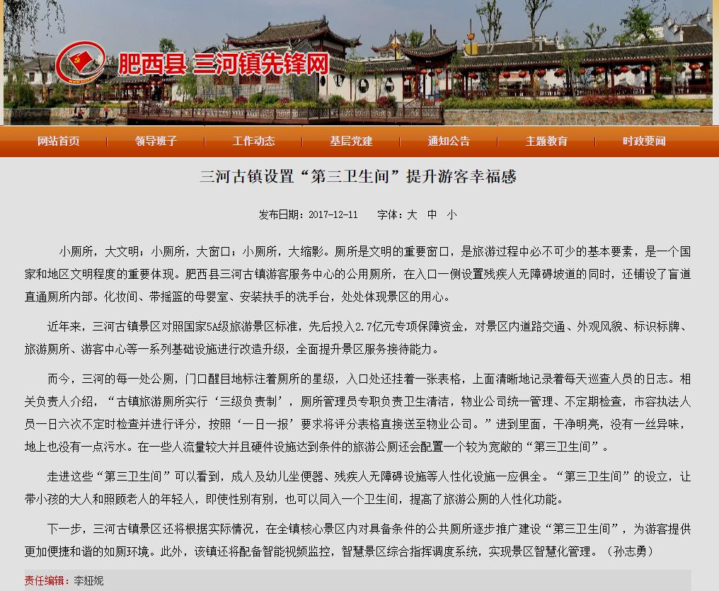 旅游廁所是展示和反映景區(qū)文明水平、旅游服務(wù)質(zhì)量的重要窗口。近年來,三河古鎮(zhèn)景區(qū)大力開展廁所革命,按照“數(shù)量充足、衛(wèi)生文明、實(shí)用免費(fèi)、有效管理”的要求,全力推進(jìn)景區(qū)旅游廁所建設(shè),取得了較好的效果。