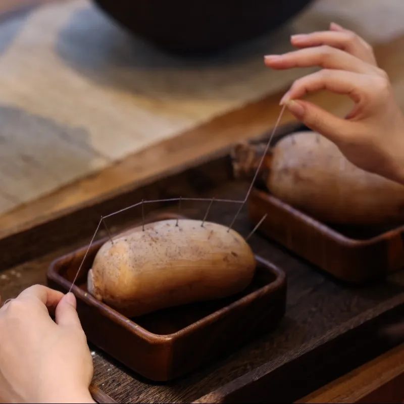 七夕節(jié)又稱乞巧節(jié),古時女子在這一天通過穿針等方式來祈求今后雙手靈巧。將七根針插在蓮藕上,需要用針線依次穿過針孔,謂之“得巧”。將針插在藕上,也有諧音“偶遇”的意思。