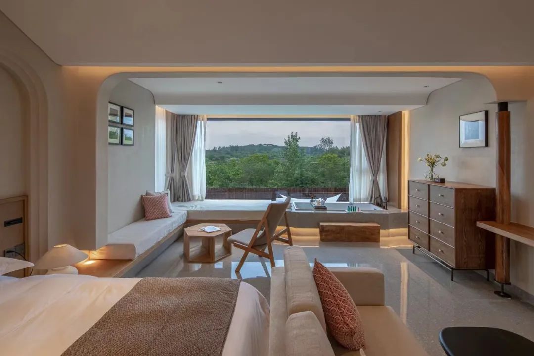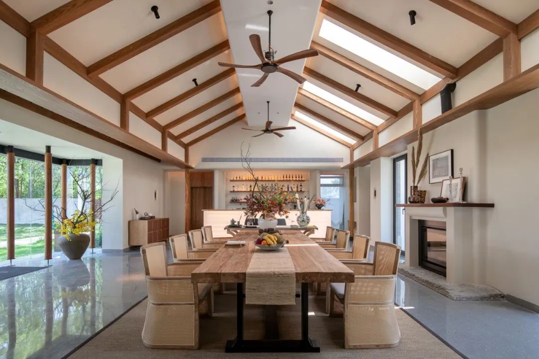 項目現(xiàn)有客房6間,配備餐廳、咖啡吧、書吧、會議多動能廳、展銷廳、燒烤、露營、土灶等一系類沉浸式體驗。讓廬月又·省園不僅僅是景觀的詩意棲息地,更是對生活的一種詮釋。