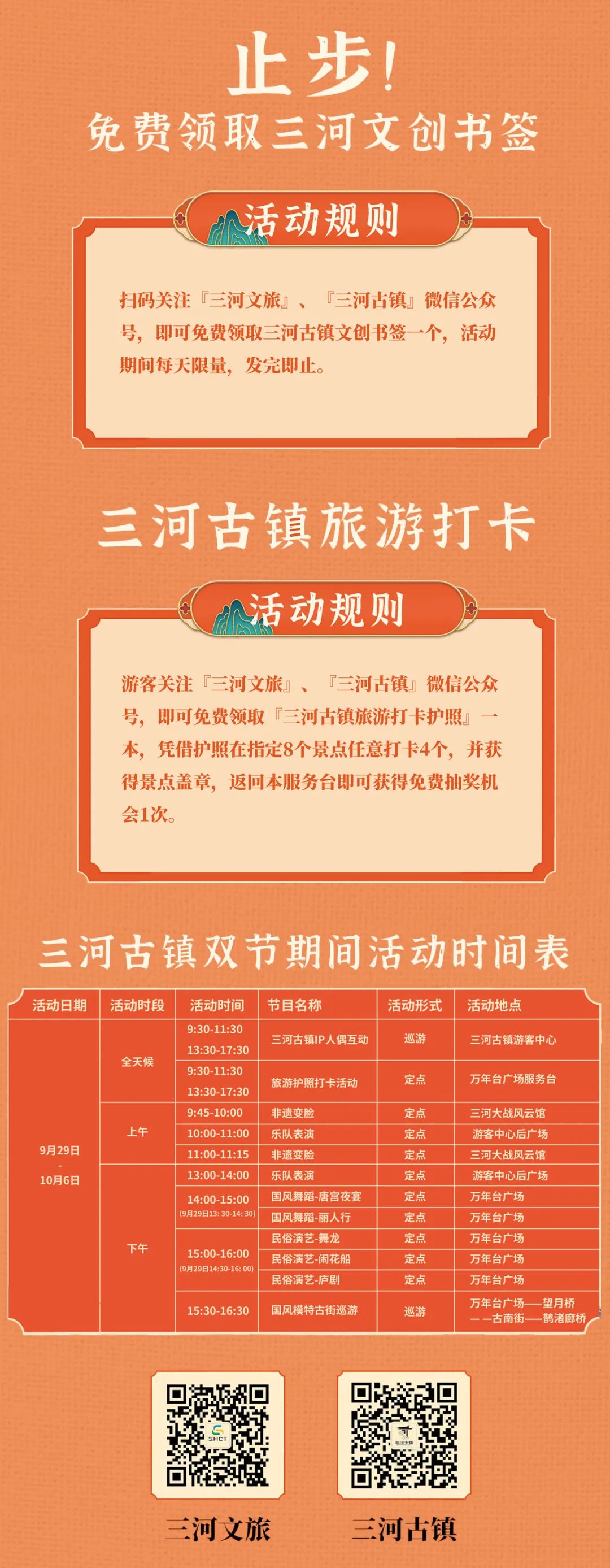 p.s.關(guān)注三河文旅、三河古鎮(zhèn)旅游公眾號,前往萬年臺廣場服務(wù)臺即送三河古鎮(zhèn)文創(chuàng)書簽,送完即止。