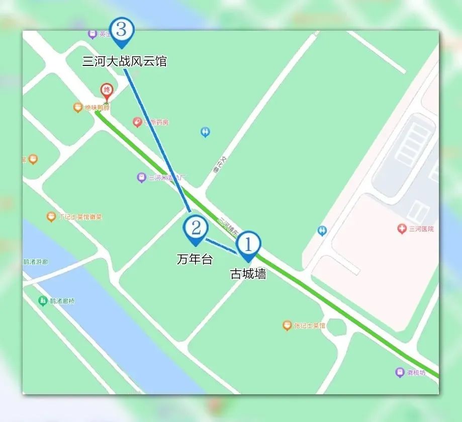 路線:古城墻→萬年臺(tái)→三河大戰(zhàn)風(fēng)云館→結(jié)束行程(返回游客中心)