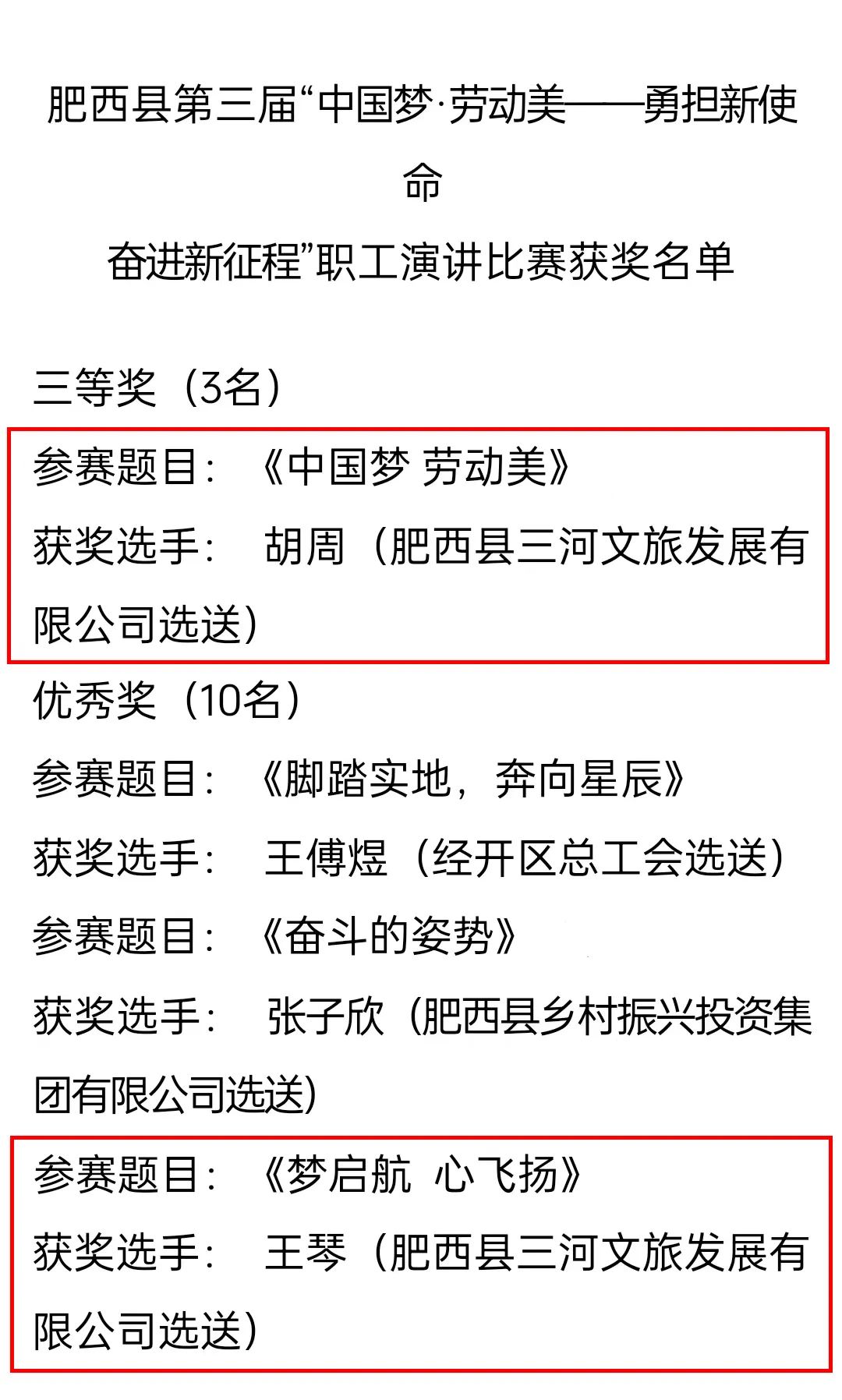 縣三河文旅公司參賽選手胡周宣講的《中國(guó)夢(mèng) 勞動(dòng)美》榮獲三等獎(jiǎng);選手王琴宣講的《夢(mèng)啟航 心飛揚(yáng)》榮獲優(yōu)秀獎(jiǎng)。