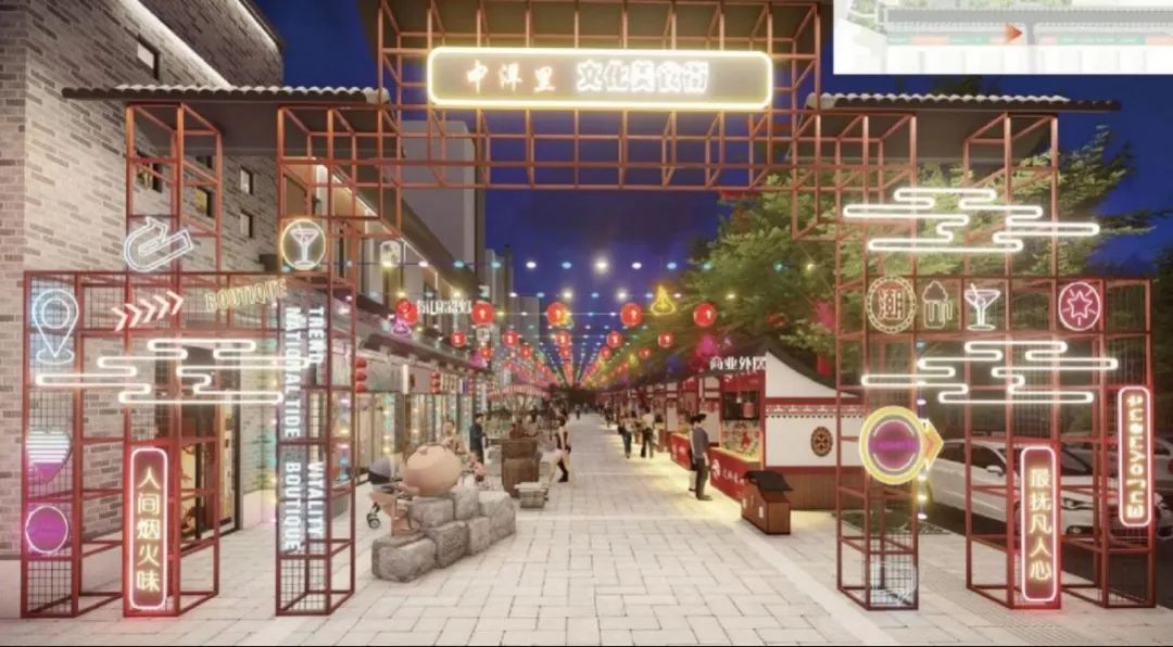 從設(shè)施街道、景觀、建筑立面及店招和品牌形象等多方面,進行全方位設(shè)計升級。除商業(yè)屬性外,它保持了對傳統(tǒng)文化記憶的延續(xù)傳承。