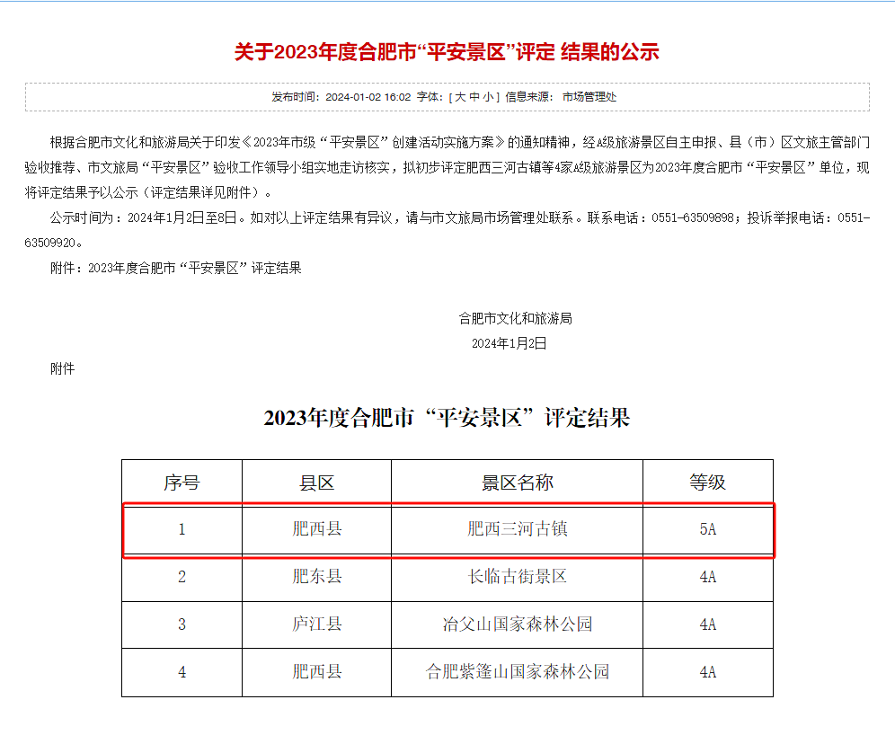 近日,合肥市文化和旅游局公布了《關(guān)于2023年合肥市“平安景區(qū)”評(píng)定結(jié)果的公示》,