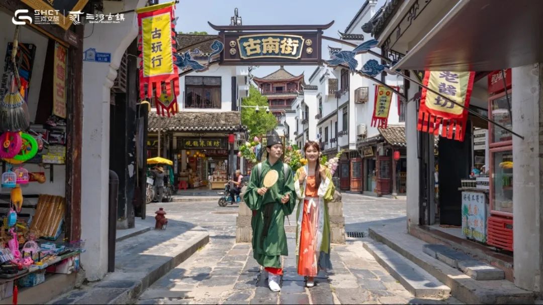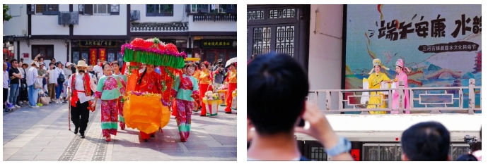 端午假期第一天,三河古鎮(zhèn)人頭攢動(dòng),熱鬧非凡。