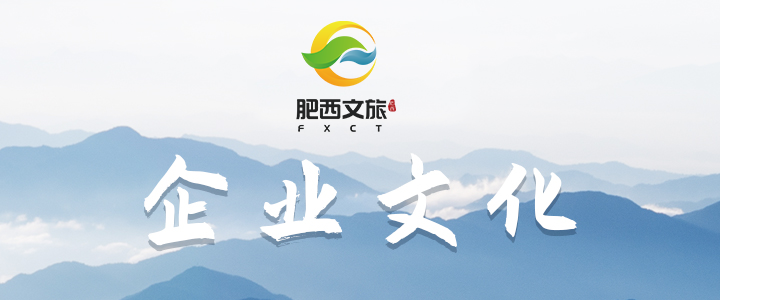企業(yè)使命:致力于將肥西縣打造成全國知名旅游目的地城市 企業(yè)愿景:構(gòu)建以農(nóng)商文旅為核心的產(chǎn)業(yè)集群,成為國內(nèi)頂流文旅企業(yè) 核心價值觀:使命擔(dān)當(dāng) 黨建引領(lǐng) 凝心發(fā)展 貢獻(xiàn)社會 企業(yè)精神:創(chuàng)新 融合 實(shí)干 包容 自驅(qū) 共享 工作作風(fēng):不把說了當(dāng)做了 不把做了當(dāng)做成了 經(jīng)營理念:創(chuàng)造快樂 分享快樂 傳遞快樂
